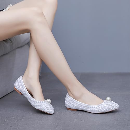 Women's Pearl Pointed Toe Flat Dress Shoes Elegant Sparkly Slip-On Comfort supple Sole Ballet Flats Low Chunky Heel Wedding Bridal Pumps