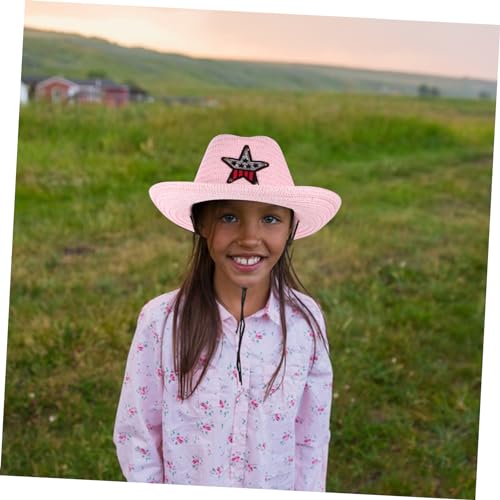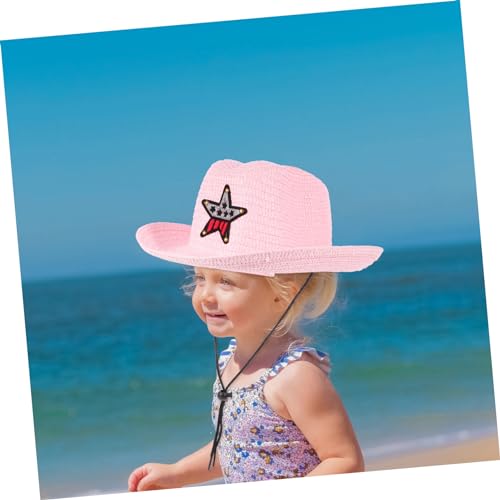More information about Sosoport Children's Straw Cowboy Hat for Kids UV Protection Wide Brim Sun Hat for Beach Summer Parties Pink