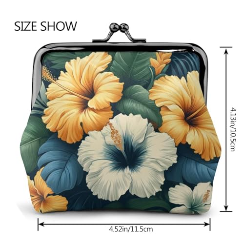 trending ! Pu Leather Buckle Coin Purse Hibiscus-Tropical-Flower Girls Kiss-Lock Change Purse Wallets