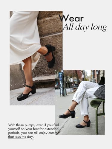 DREAM PAIRS Women's Dress Shoes Mary Janes relaxing Low Block Heels Pumps Round Closed Toe Chunky Ankle Strap Shoes for Work Flight
