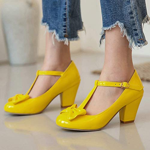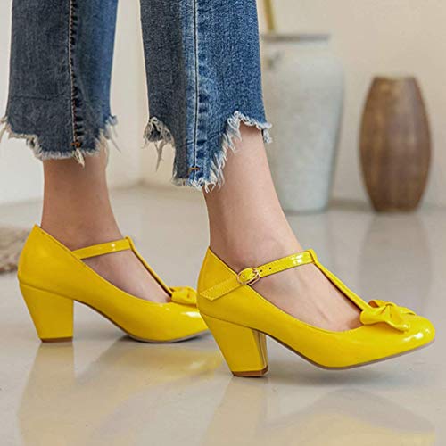 Bellirala Womens T-Strap Mary Jane Block Heel Pumps Rockabilly Lolita Cosplay Shoes