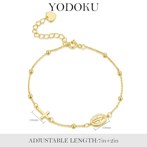Gold Bracelets for Women 14K Gold Bracelets for Women Beaded Bracelet for Womens Combination of Beads Cross and Tiny Virgin Mary Badge Cross Bracelet for Womens