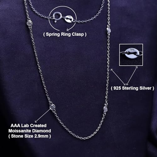 trending ! 2.9MM Round Lab Created Moissanite Bezel Set Yard Station Chain Necklace In 14k Gold Over Sterling Silver 16'' To 36" (0.60 Ct To 1.60 Ct), Mother's Day Gift For Her