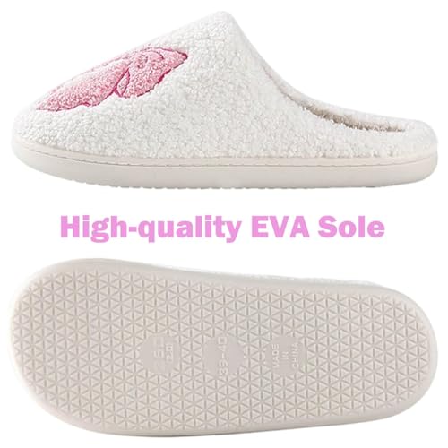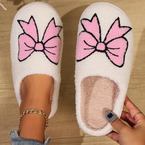 Bow Slippers For Women, Womens House Slippers, Cute Fall And Winter Pink Plush Fluffy comfortable Indoor Slippers