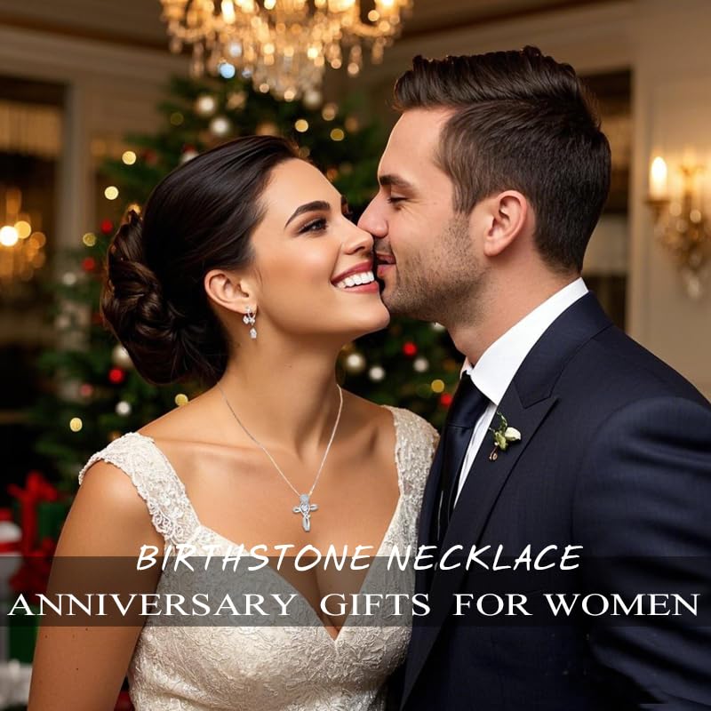 HeartMelody Birthstone Cross Necklace for Women Gold, Wedding Anniversary Birthday Sunflower Necklaces Gifts for Wife Her,Mom,14 K /18K White Gold Infinity Necklaces Womens Christian Everyday Jewelry with Heart Pendant