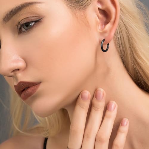 NEWITIN 12 Pairs Surgical Stainless Steel Hoop Earrings for Men Hypoallergenic Earring Huggie Cartilage Hoop Earring Set Colorful Small Hoop Earrings for Women Men