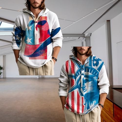 ZOCANIA Mens Hoodies Pullover American Flag Hoodies Long Sleeve Loose Fit Pullover Shirts Henley Button Collar Sweatshirt