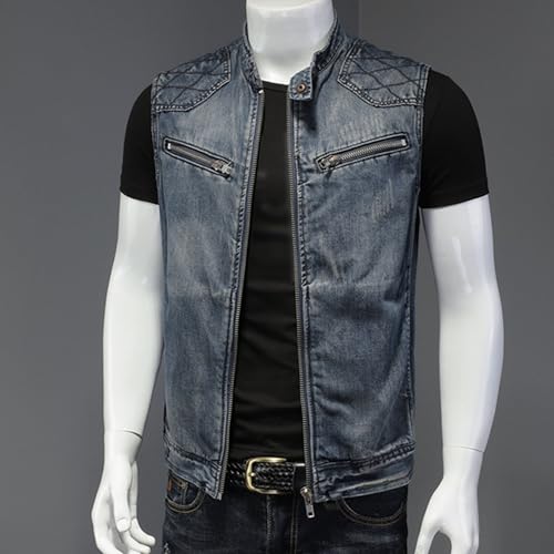 trending ! Men's vintage Zipper Sleeveless Jean Jacket Retro Motorcycle Biker Denim Vests Stand Collar Collar Cowboy Vest
