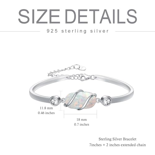 Material: Sterling SilverMetal type: Sterling SilverClasp type: Lobster ClawChain type: Rolo ChainMetal weight: 10 gGem type: Opal【Opal Bangle Bracelet】The design of this opal bracelet is elegant and versatile, perfect for daily wear or special occasions. It can be worn alone as a statement piece or layered with other bracelets for a more layered look.【Gemstone Bracelet Bangle Size】This white opal bangle is classic and unique, the stone size is 0.7 inches*0.46 inches. Bracelet length is 7 to 9. With the adjustable chain and lobster clasp, you can easily adjust the size to your liking. October birthstone bracelet.【925 Sterling Silver Bracelet Material】The opal jewelry is made of 925 sterling silver, lead-free, cadmium-free, hypoallergenic and suitable for sensitive skin. The smooth surface of the bracelet adds to its overall appeal, enhances its luster and makes it feel comfortable. And it protects the wrist.【Perfect Gifts】Reward yourself or a loved one with this stunning opal bracelet. This is a great gift for wives, moms, daughters, grandma on Valentine's Day, Mother's Day, birthdays, Christmas, anniversaries and other special occasions. Comes in a elegant gift box.【HPQQ Service】We are committed to providing high-quality jewelry and the best service to all customers. If you have any questions, please feel free to contact us. We will help you solve the problem as soon as possible. Perfect for everyday use. premium materials and excellent craftsmanship ensure long-lasting durability.