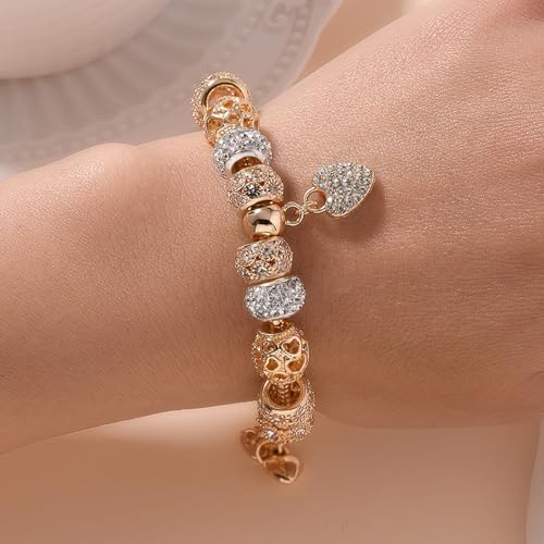 Leprato Gold Plated Heart Charm Bracelet Glass Crystal Beaded Bracelet Stunning Jewelry Gifts for Women