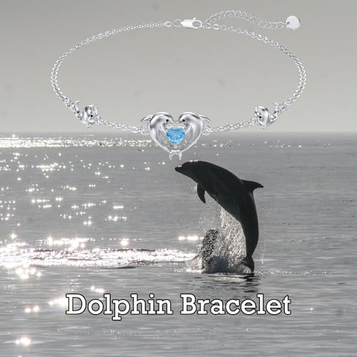Natural Blue Topaz Dolphin Bracelet for Women 925 Sterling Silver Double Dolphins Bracelet Dolphin Jewelry Birthday Gifts for Women