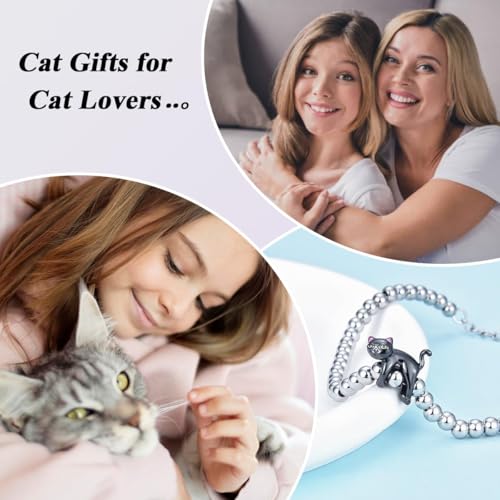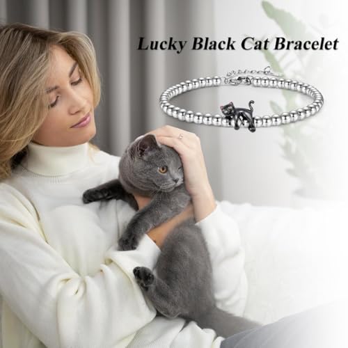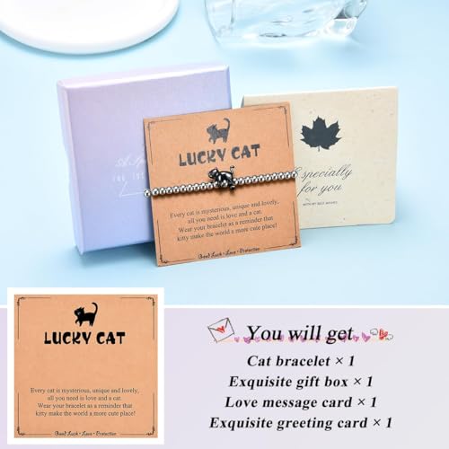 Cat Lover Gifts for Women Lady Girls, Lucky Black Cat Bracelets Jewelry with Kitty Themed Card, Christmas Stocking Stuffers Birthday Gifts for Cats Mom supreme Friends Bestie Sister