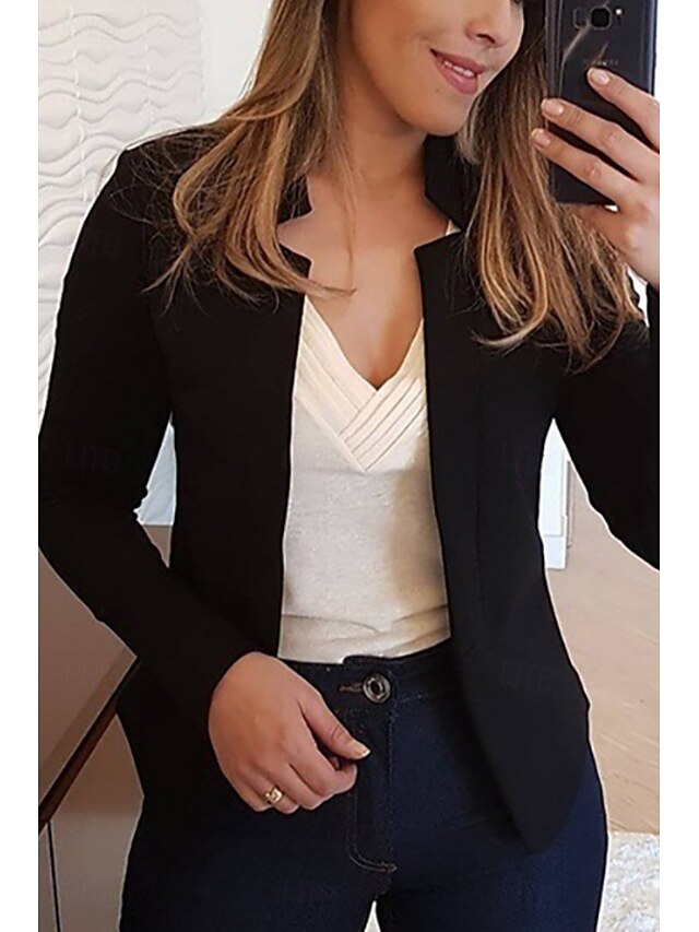 This Women's Blazer cushy Breathable Slim Fit Casual Plain Office Street Casual Daily Wear Open Front Short Stand Collar Regular Fit Long Sleeve Outerwear Black White Yellow Spring Fall combines elegant design with practical functionality. Every detail has been carefully considered to ensure you get the best possible experience. The first-class construction means this product will serve you well for years to come.
