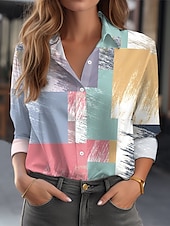 trending ! Women's Shirt Button Down Tunic Shirt Collar Long Sleeve Geometric Tie Dye Casual Regular Tops Work Daily s Print Blue Spring Fall Winter
