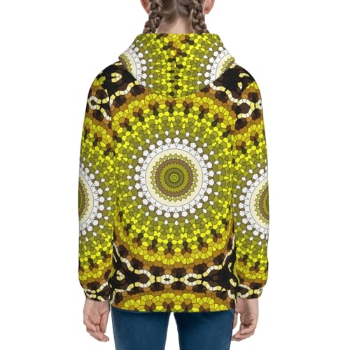 Yellow Mandala Kid Hoodies Boys Zip Up Sweatshirts Girls Pullover with Pocket