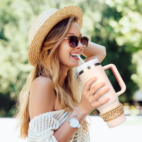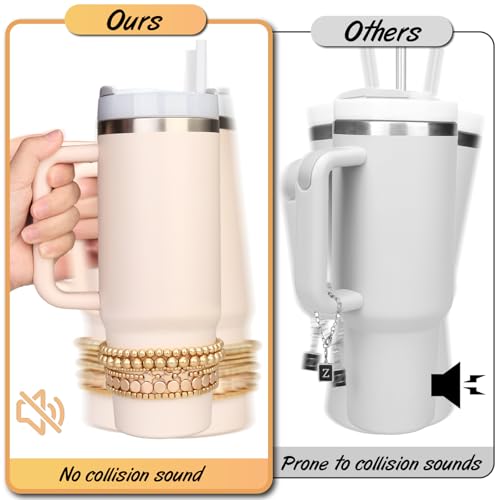 Bracelets for Stanley Cup Accessories, 6Pcs Bracelet Stack Charms for Stanley 40 oz&30 oz Tumbler with Handle, Delicate Beads Charm Attachments for Stanley Decorations(Gold)