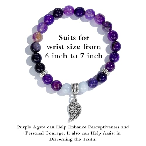 • Inspirational Healing: The bracelet is made of finest Purple Agate Round Beads. Purple Agate can Help Enhance Perceptiveness and Personal Courage. It also can Help Assist in Discerning the Truth