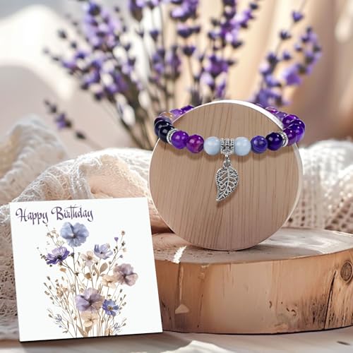 trending ! Happy Birthday Bracelet for Women, Natural Stone 8mm Beaded Bracelets for Her Granddaughter Gifts