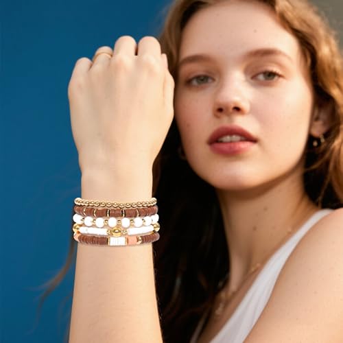 Material: Polyvinyl ChlorideMetal type: No Metal TypeClasp type: Fold OverGem type: No gemstonePremium Quality Materials: The beaded bracelets for women is handcrafted with vinyl disc clay beads and elastic strings, exuding a Bohemian style charm. The special materials and handcrafted techniques are combined to create a distinctive and romantic shapeElastic and Convenient: This beach jewelry for women features an elastic beaded design, making it easy and effortless to wear, and it can fit the wrist flexibly. There's no need to worry about the size. You can put it on quickly anytime and anywhereVersatile and Adaptable: The boho bracelets for women can be freely combined and is suitable for various occasions such as beaches, holiday parties, beach vacations, parties, weddings, and daily life. After women wear these fashionable bracelets, they can pair them with different white clothes and accessories to meet various styling needsBohemian Style: This bracelets for women exudes a strong Bohemian flavor, being natural, casual and full of artistic sense. Whether paired with everyday clothing or adding highlights to special occasions, it can easily showcase a unique exotic charmBest Gift Choice: This summer accessories for women is a thoughtful gift for women's festivals, suitable for graduation, birthdays, parties, Mother's Day, Thanksgiving Day, Christmas, Valentine's Day, weddings, anniversaries, etc. Handcrafted with heartfelt care, each piece is unique, allowing the recipient to feel warmth and love Perfect for everyday use. premium materials and excellent craftsmanship ensure long-lasting durability.