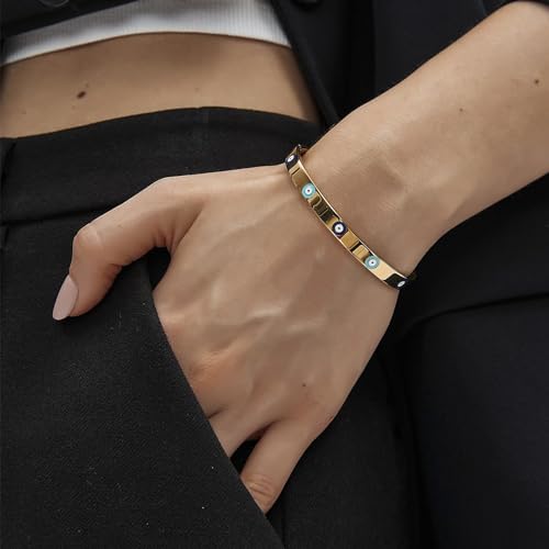 trending ! Evil Eye Bracelet Gold and Silver Stainless Steel Lucky Bracelet vintage bracelet supreme gift for Women Teen Girls