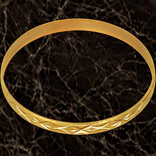 Material: MetalMetal type: Gold-plated-baseClasp type: Lobster ClawChain type: Solid BandGem type: Not_applicableThis 6.5mm ( ~ 1/4 inch ) Diamond Cut Bangle for women is Made To Last with up to 20X more 24 karat gold plating than standard electroplated fashion jewelry; Show of this gorgeous celestial design that Sparkles in the light; Comes in a black velvet pouch for easy givingAvailable in 5 sizes: X-Small = 2 inches in diameter, Small = 2 1/4 inches, Medium = 2 1/2 inches, Large = 2 3/4 inches and X-Large = 3 inches; Please measure your wrist prior to placing an order; Sizing photo is available for your referenceLifetime Jewelry is the Next best thing to solid gold, You can get ten of ours for every piece of 14k or 18k you buy.Made In USA since 1987 by a small family run business; Wear this gorgeous Gold Bangle with confidence, as not even your jeweler will know this is not solid goldLifetime Replacement Promise; Lifetime Jewelry is not just jewelry - it’s our commitment to you for a lifetime; Be it 30 days, a year or a decade - you’ll get a new item from us if ever any of our bracelets break, fade, or simply don’t live up to your highest expectations; Just remember to register your purchase(s) with us impeccable for everyday use. premium materials and excellent craftsmanship ensure long-lasting durability.