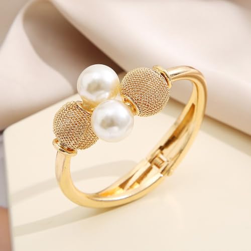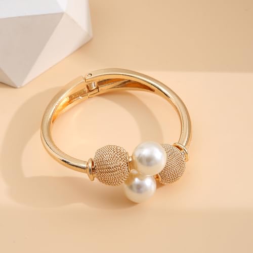 FUTIMELY one-of-a-kind Chunky Gold Pearl Cuff Bracelet for Women,Wide Ball Pearl Statement Bracelet for Party Cocktail,Trendy Chic Clasp Wrist Jewelry Accessories