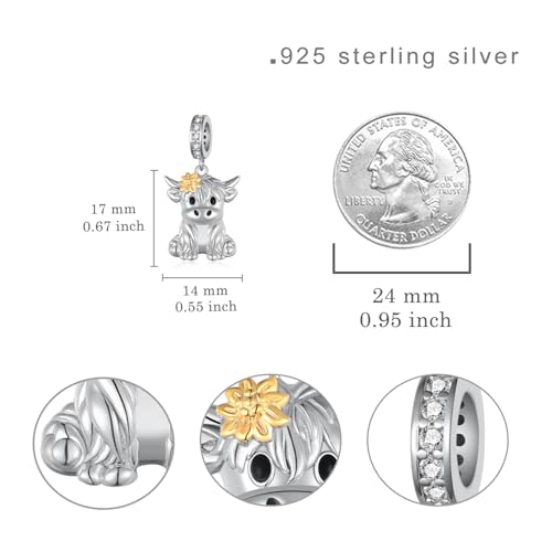 Cow Charm 925 Sterling Silver Highland Cow Charm for Bracelets Highland Cow Jewelry Gifts for Women