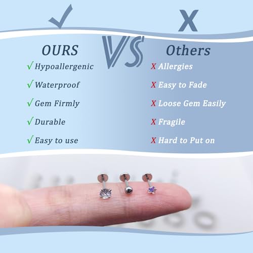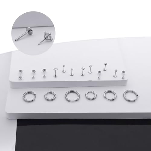 Material: Stainless SteelMetal type: Stainless SteelBack Finding: Flat BackEarring design: StudGem type: Cubic ZirconiaFlat Back Earrings for Women: Including 6 pairs tiny stude arrings and 3 pairs small hoop earrings.Multipack earring to match your ears flexibly,Wear these flat back stud earrings and hoop earrings alone or with other earrings will either be great,Multipack earring to match your ears flexibly.Hypoallergenic Surgical Steel Earrings: jagosen flat back earrings made of hypoallergenic 316L surgical steel,frinedly for sensitive ears,no rust and tarnish,long lasting color retention,shiny on your ears.Tips:If the stud earrings fall out easily,You can bend the pin then put into the bar.Tragus Piercing Jewelry Size: Stud 0.8mm (20 gauge), Diamonds: 2mm (0.08 in) / 3mm (0.12 in) / 4mm (0.16 in), Bar Length:6mm (0.23in) / 7mm (0.27in) / 8mm (0.3in), jagosen surgical steel earrings are available in a wide range of sizes, including ball studs, star studs, pentagonal diamond studs, and three pairs of different sizes of cubic zirconia studs. earrings and three pairs of cubic zirconia studs in different sizes.Cartilage Earrings for Women: Small Hoops:8mm (0.32in), Medium Hoops: 10mm (0.39in), Big Hoops:12mm(0.47in). Hypoallergenic gold hoop cartilage earrings kit easy to put on and take off.ideal choice for people who have many ear piercings.About Us:Thank you for choosing JAGOSE Jewelry, if you have any questions after receiving the product, please reach out to us. We will reply you in time and give you a satisfactory answer to provide you with a pleasant shopping experience. Perfect for everyday use. first-class materials and excellent craftsmanship ensure long-lasting durability.