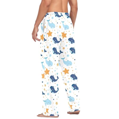 trending ! Whales and Stars Men's Pajamas Pants Cotton Sleep Bottoms Pants Lounge Sleepwear - S
