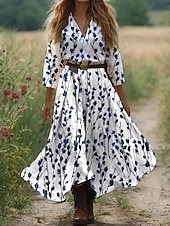 More information about Women's Boho Dress Western Dress Vintage Maxi Dress Sundress Pleated Dress Vacation Casual Boho Going out Beach Standard Fit Floral Graphic 3/4 Length Sleeve V Neck White Light Green Blue