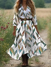 trending ! Women's Boho Dress Western Dress Vintage Maxi Dress Sundress Pleated Dress Vacation Casual Boho Going out Beach Standard Fit Floral Graphic 3/4 Length Sleeve V Neck White Light Green Blue