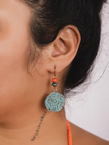 MINACHI Ethnic Vintage Bohemian Retro Antique Turquoise Color Theme Dangle Drop Earrings, Boho Jewelry Gift for Women