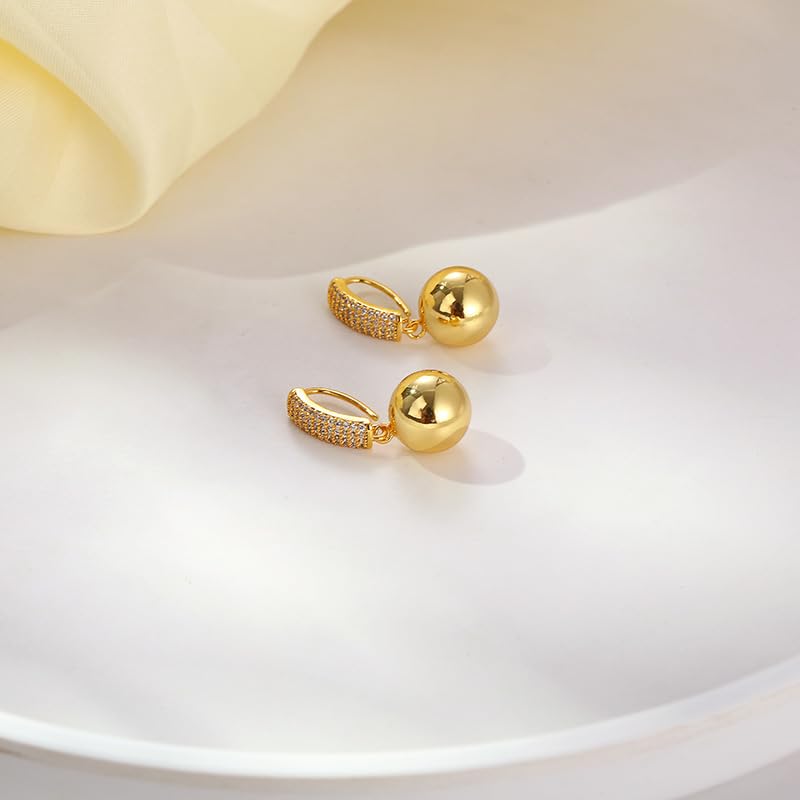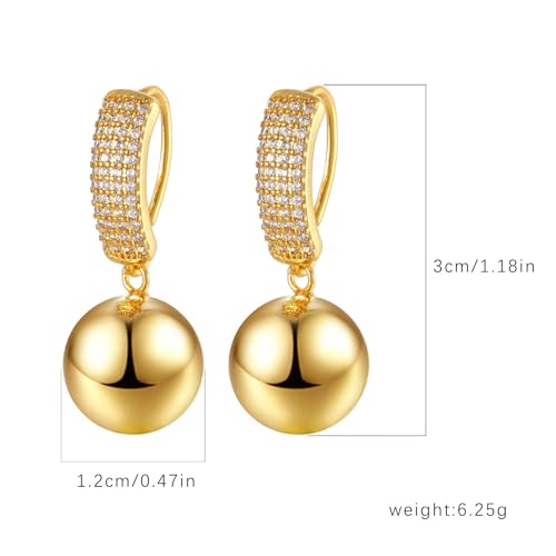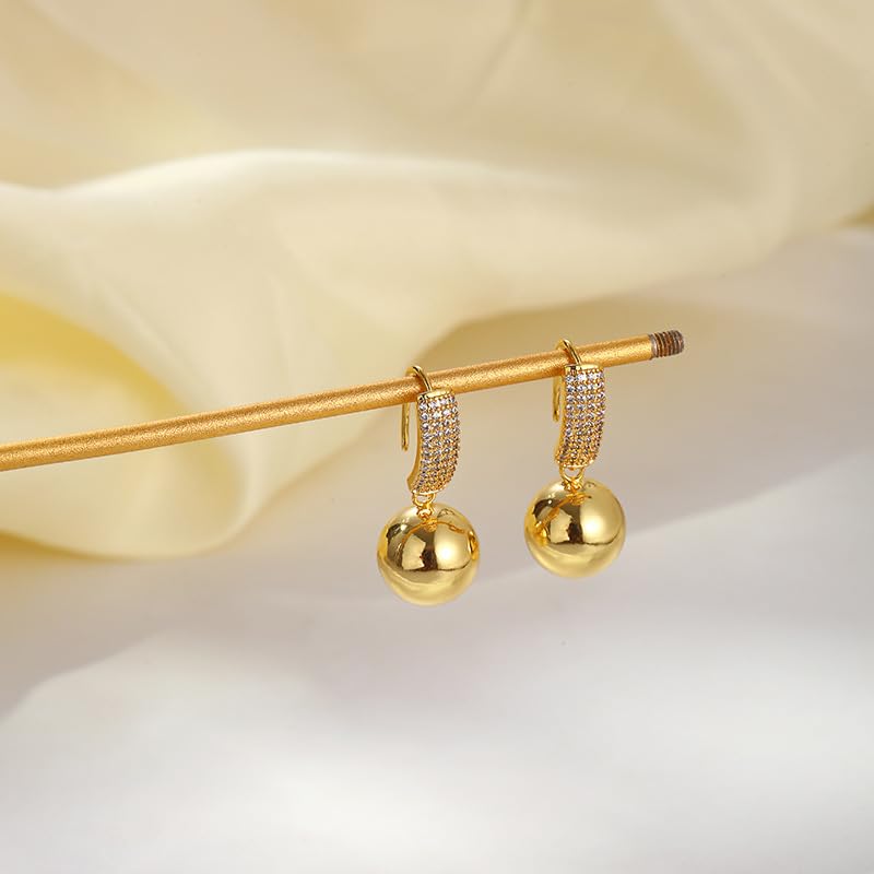 Material: CopperMetal type: CopperEarring design: DropGem type: Created Zircon【Exquisite Geometric Ball Dangle Earrings】Elevate your style with our gold ball earrings for women, featuring a chic geometric sphere design accented by shimmering micro-pavé cubic zirconia. The gold drop dangle earrings offer a contemporary twist on classic elegance, perfect for adding sophistication to both casual and formal looks.【Hypoallergenic & Sensitive-Skin Safe】Crafted with a hypoallergenic copper base and 14k gold plated finish, these drop earrings for sensitive ears ensure comfort without irritation. The leverback dangle earrings for women secure snugly, making them ideal for all-day wear.【Featherlight Comfort】Designed for effortless wear, these lightweight gold dangle earrings for women feature a gold ball earrings design that sits gracefully without tugging lobes, perfect for daily wear, weddings, or parties.【Versatile Occasion Ready】Transition seamlessly from office to evening with these gold geometric drop dangle earrings. Pair with minimalist outfits for business elegance or cocktail dresses for prom nights—effortlessly enhancing jeans, shirts, or formal gowns.【Luxury Gift-Ready Design】These gold wedding earrings for women dangle make unforgettable gifts for brides, friends, or loved ones, ideal for anniversaries, Christmas, or Mother’s Day celebrations. Perfect for everyday use. first-class materials and excellent craftsmanship ensure long-lasting durability.