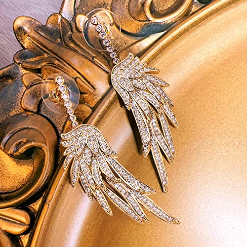 More information about S925 Sterling Silver Post Dangle Drop Angel Wings Earrings for Women Gold Blue Cubic Zirconia Crystal Guardian Angle Dangling Earrings for Wife Mom Her
