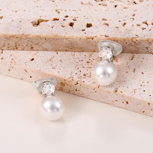 trending ! 2 Pairs Pearl Clip On Earrings for Women, 14K Gold Pearl Earrings 925 Silver Pearl Earrings, 10mm White Pearl Non Pierced Hypoallergenic Trendy Wedding Jewelry