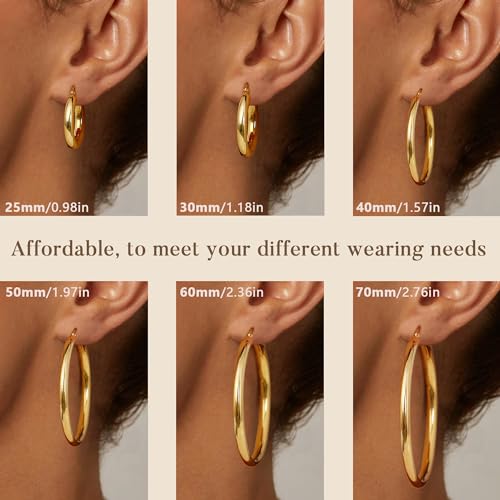 BESTEEL 14K Chunky Gold Hoop Earrings for Women With 925 Sterling Silver Post Hollow Tube Hoops Earrings 4mm Thick Gold Hoop Earrings Hypoallergenic Lightweight Gold Large Hoop Earrings 25/30/40/50/60/70MM