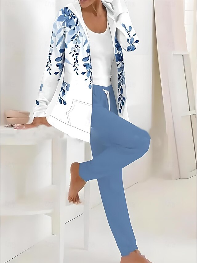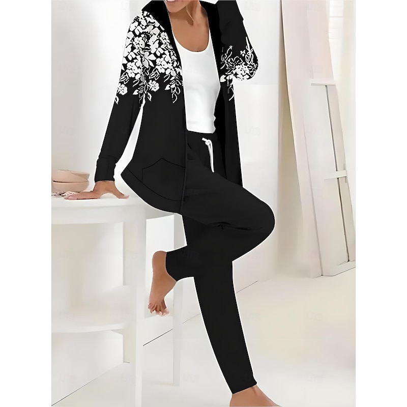 trending ! Women's 2 Pieces Tracksuits Pants Sets Long Sleeve Active Daily Hoodie Hooded Floral Graphic Drawstring Print Outdoor Casual Black Dark Navy Light Brown Fall & Winter Regular Fit
