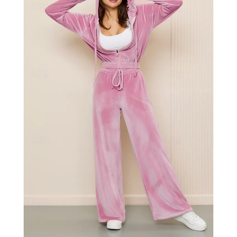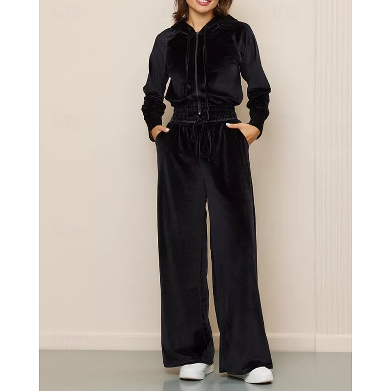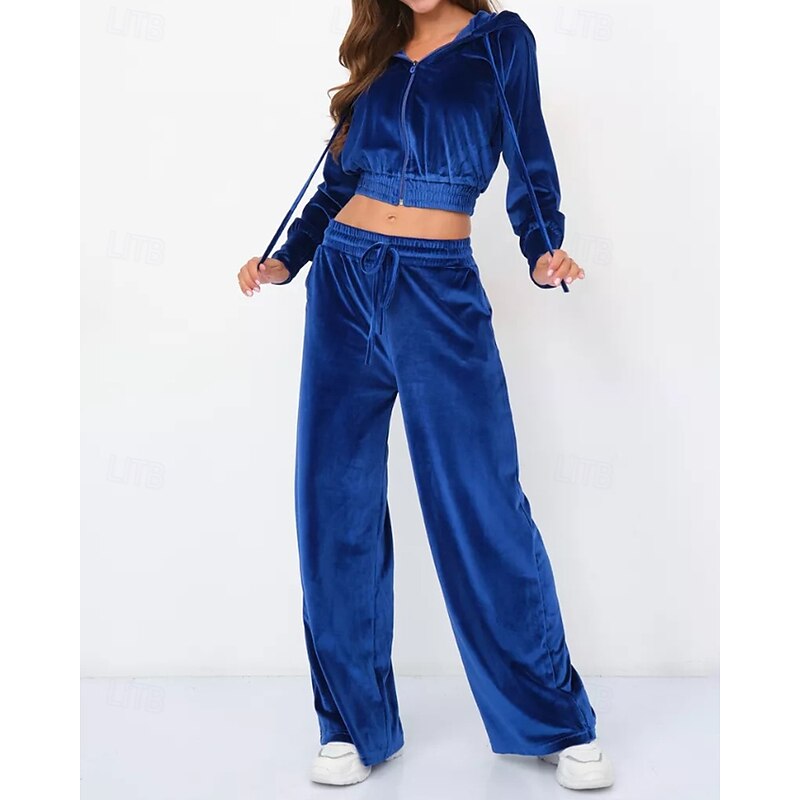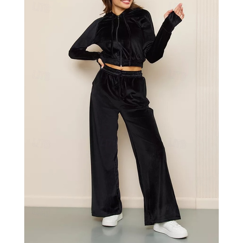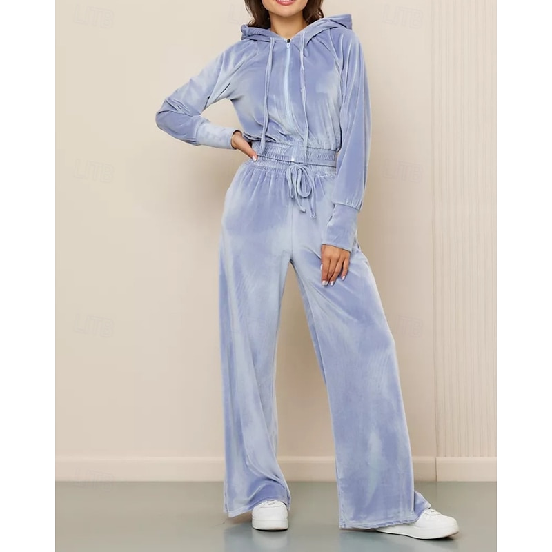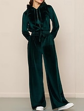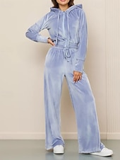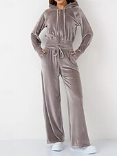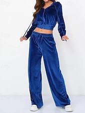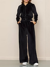 More information about Women's Active Fashion Blouse Hoodie Pants Sets Long Sleeve Hooded Solid Color Drawstring Zipper Holiday Daily Wear Going out Black Pink Navy Blue Fall Regular Fit