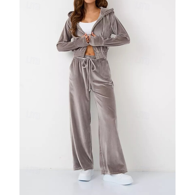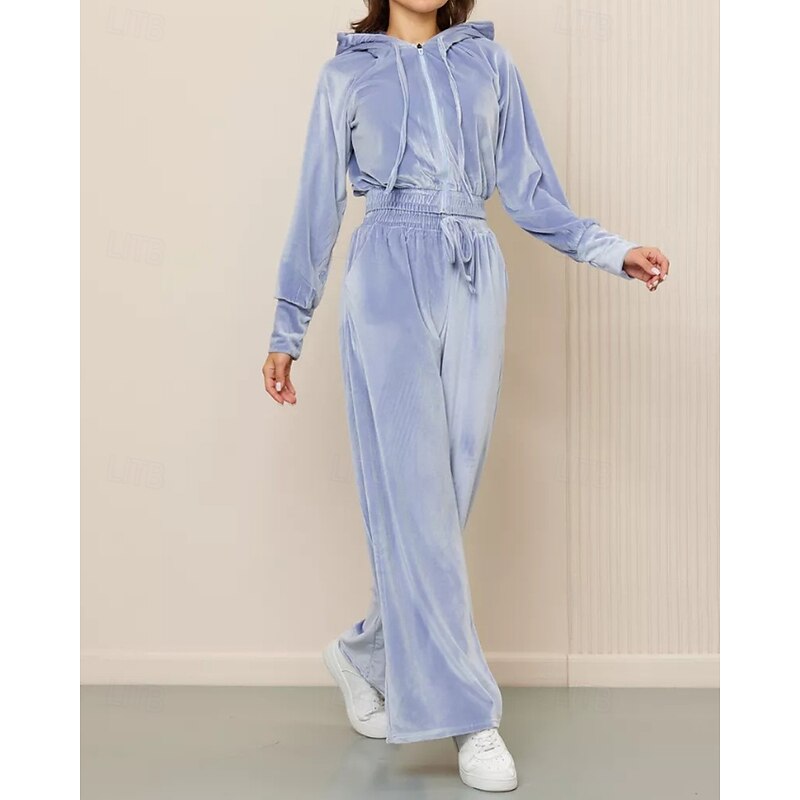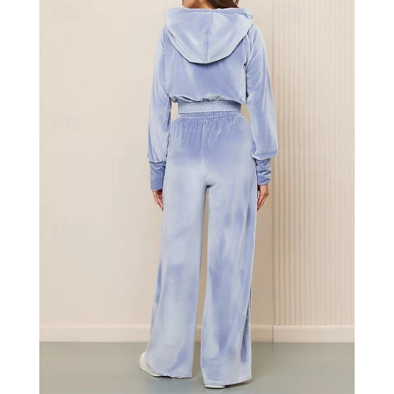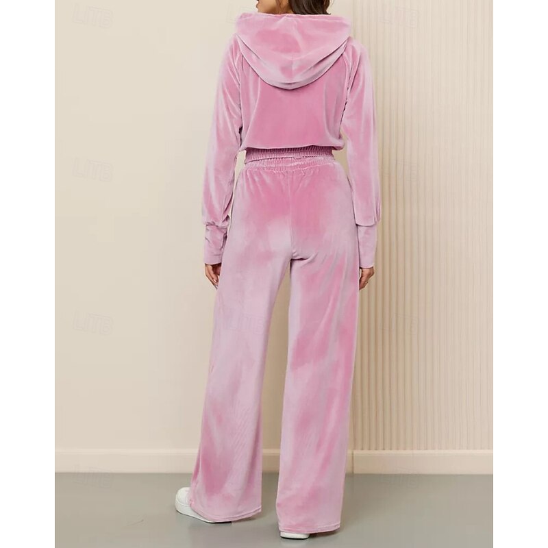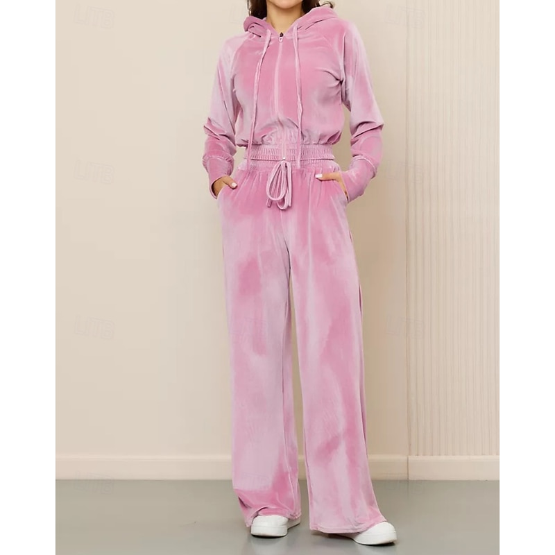 More information about Women's Active Fashion Blouse Hoodie Pants Sets Long Sleeve Hooded Solid Color Drawstring Zipper Holiday Daily Wear Going out Black Pink Navy Blue Fall Regular Fit