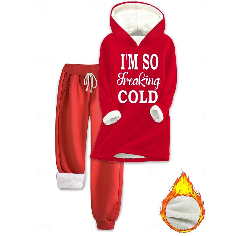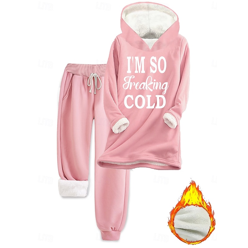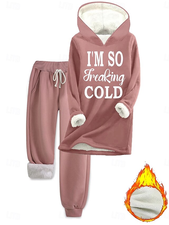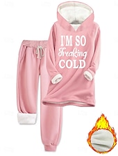 Why Choose Women's thermal Daily Two Piece Sets Tracksuit Pants Sets Long Sleeve Hooded Graphic Letter Drawstring Print Casual Daily Black Pink Dark Pink Fall Loose Fit?