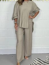 This Women's Fashion Streetwear Daily Pants Sets Long Sleeve Crew Neck Solid Color Print Casual Daily Khaki Beige Gray Summer Regular Fit combines elegant design with practical functionality. Every detail has been carefully considered to ensure you get the premier possible experience. The first-class construction means this product will serve you well for years to come.