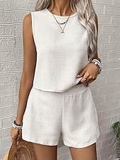 More information about Women's Active Blouse Shorts Sets Sleeveless Crew Neck Solid Color Sequins Vacation Holiday Black White Navy Blue Summer Regular Fit
