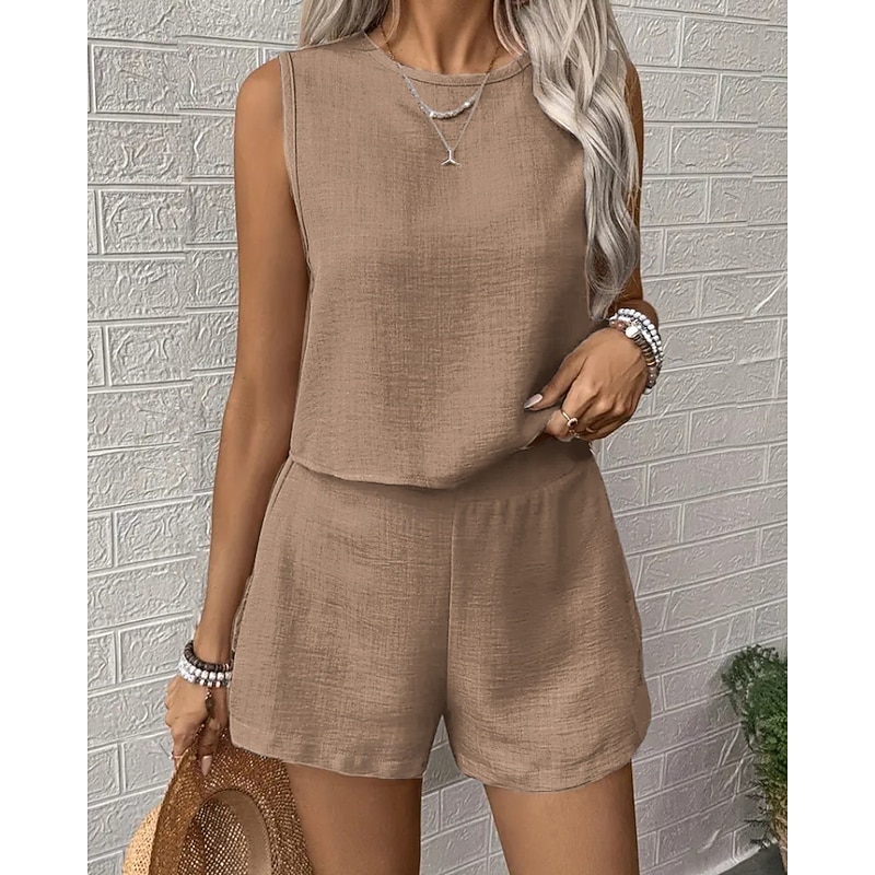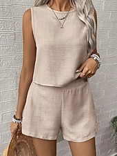 trending ! Women's Active Blouse Shorts Sets Sleeveless Crew Neck Solid Color Sequins Vacation Holiday Black White Navy Blue Summer Regular Fit