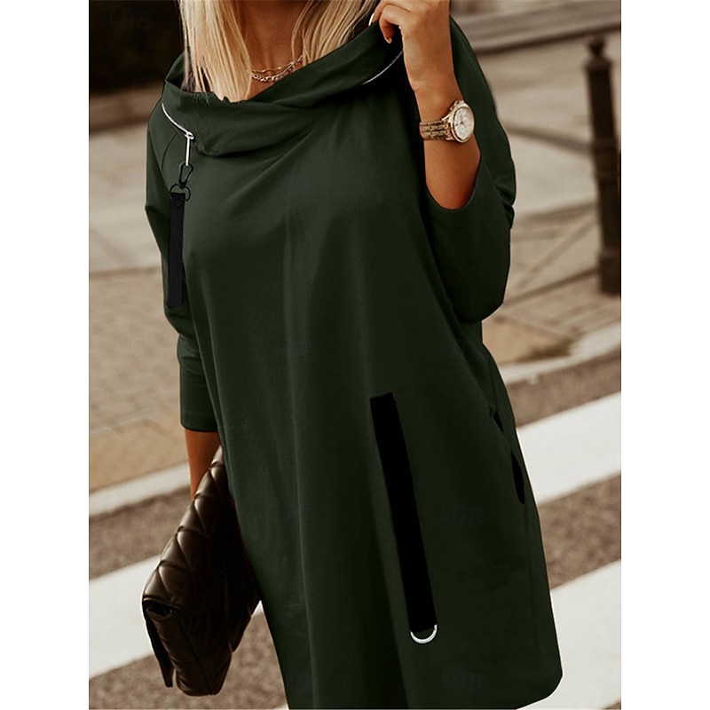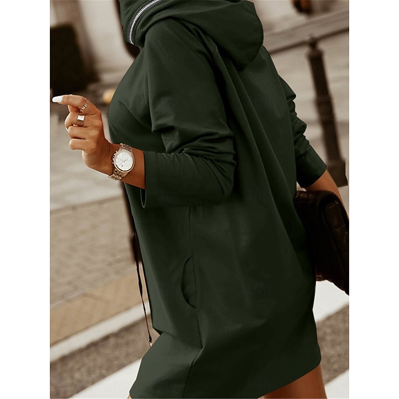 Highlights [Fabric:] Crafted from a durable polyester blend, this women's hoodie sweatshirt promises both warmth and breathability. The fabric's micro-elastic properties provide a comfortable fit, making it an ideal choice for cool fall and winter days. [Fit:] Featuring a regular fit, the hoodie is designed to offer a relaxed and comfortable silhouette. Its long sleeves and regular length make it a versatile piece for everyday wear. [Design Highlights:] This hoodie boasts a practical zipper closure that runs down the front, complemented by a casual hood with an adjustable drawstring for added comfort and style. The black zipper contrasts strikingly against the available color options—Black, Red, and Army Green—offering a contemporary touch to the timeless hoodie design. [Occasions:] Perfect for daily wear and street style, this casual hoodie is versatile enough for a variety of settings, be it a leisurely weekend outing or a casual day around town. Its practical design, complete with pockets, makes it suitable for keeping essentials handy on the go. [Size Range:] Available in an inclusive size range from S to 2XL, this hoodie caters to a wide variety of body types, ensuring a regular fit for every wearer. Perfect for everyday use. first-class materials and excellent craftsmanship ensure long-lasting durability.