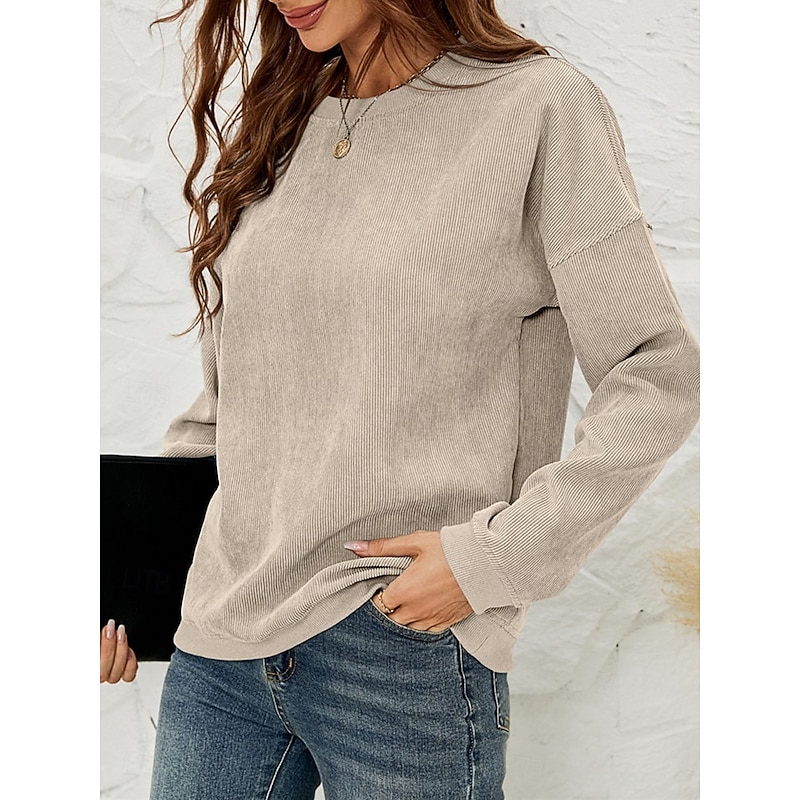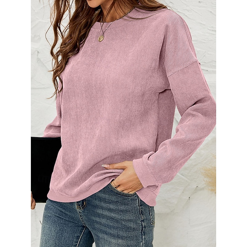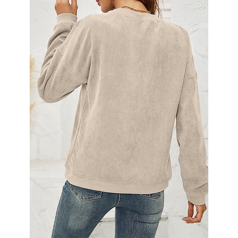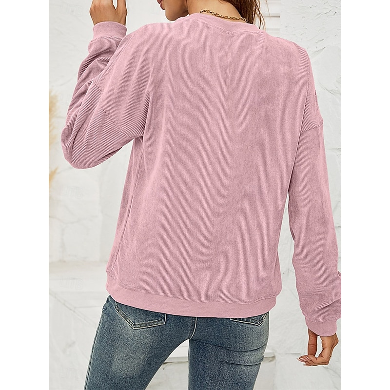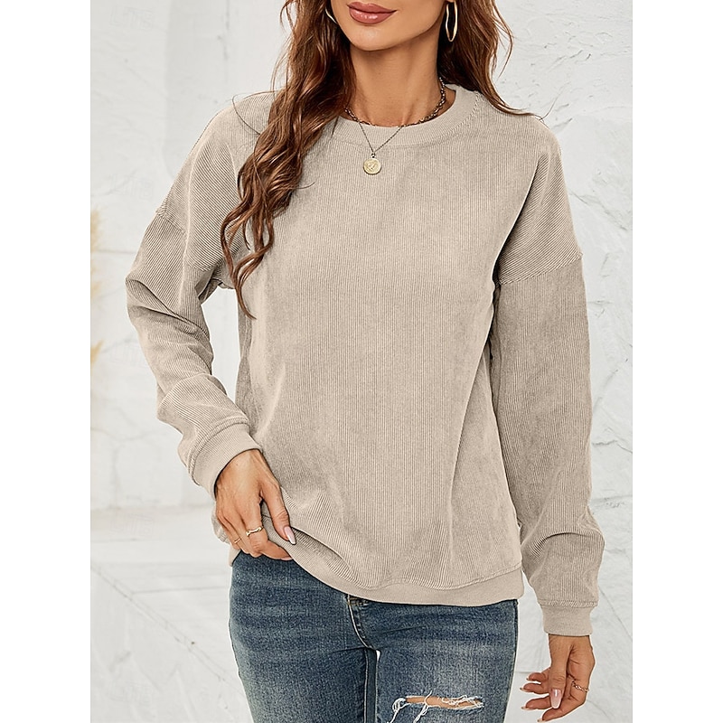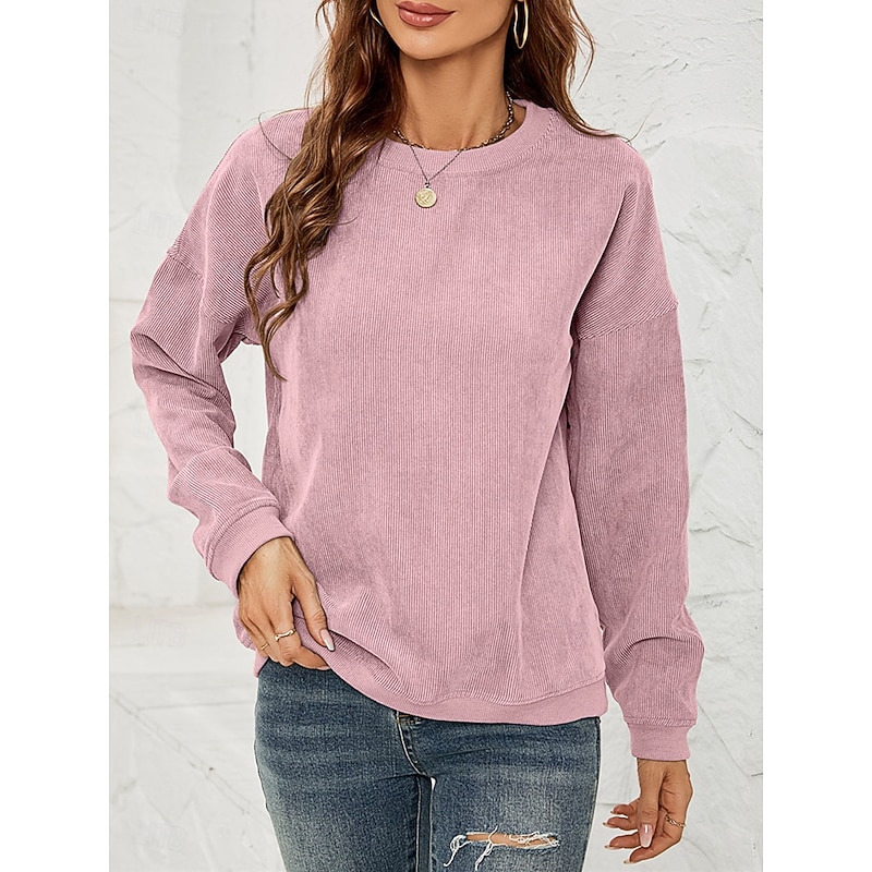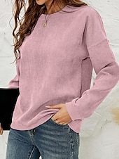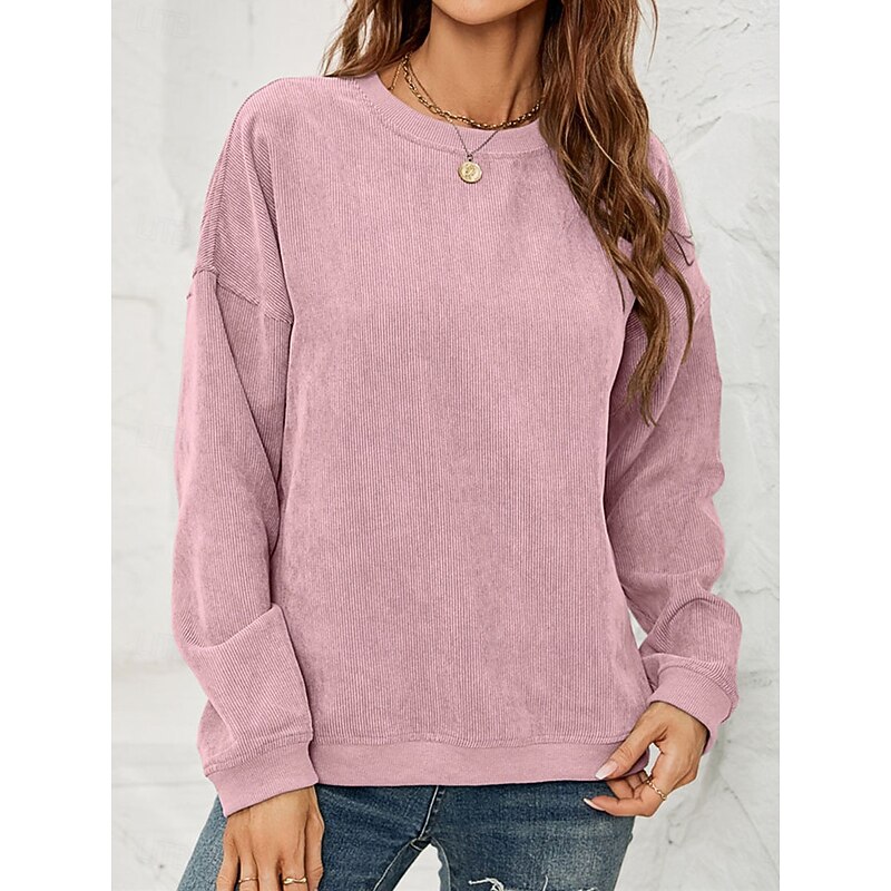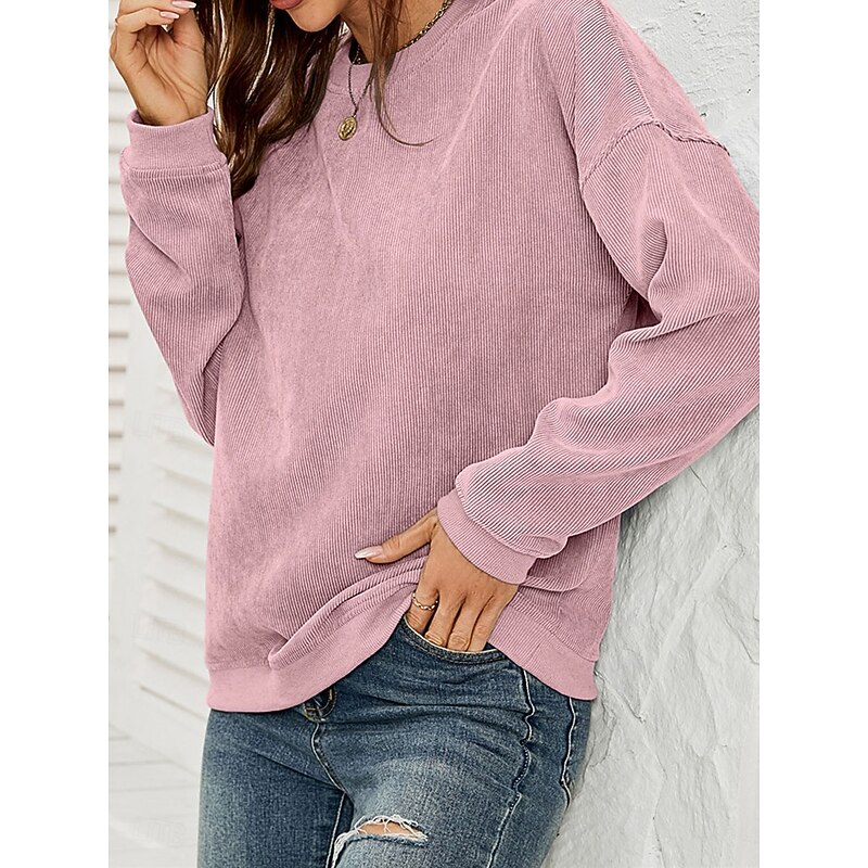 trending ! Women's Sweatshirt Casual Plain Street Dailywear Crew Neck Long Sleeve Pink Green Beige Fall Winter