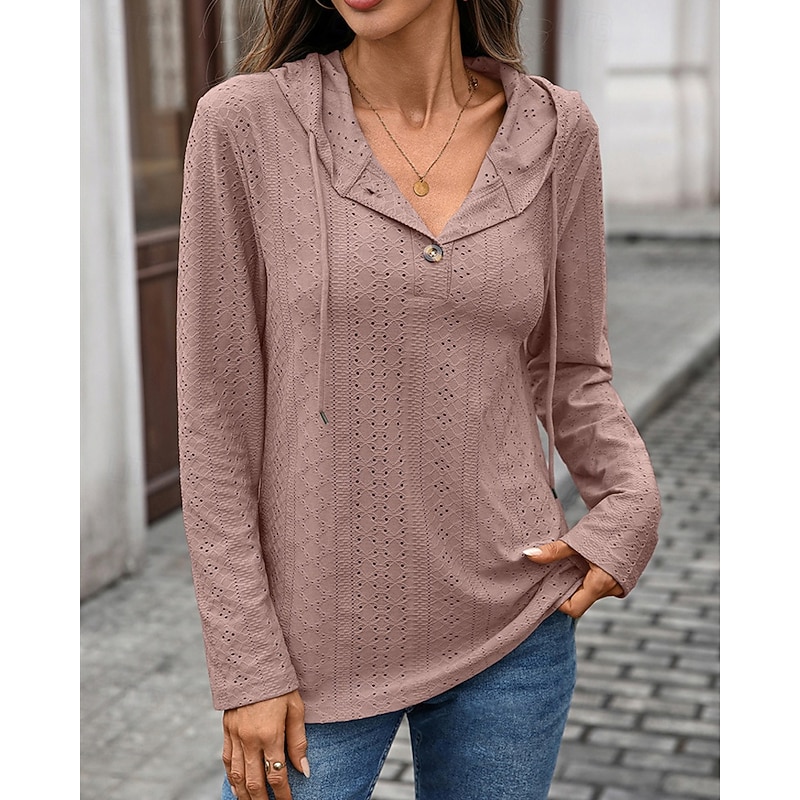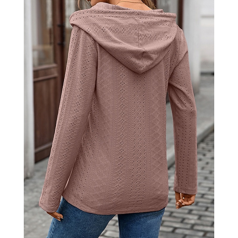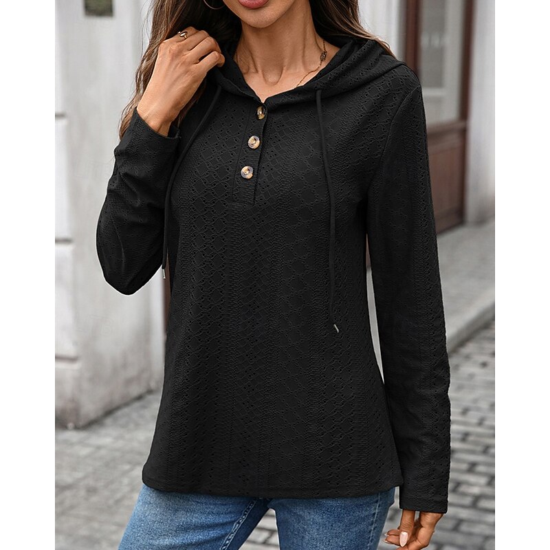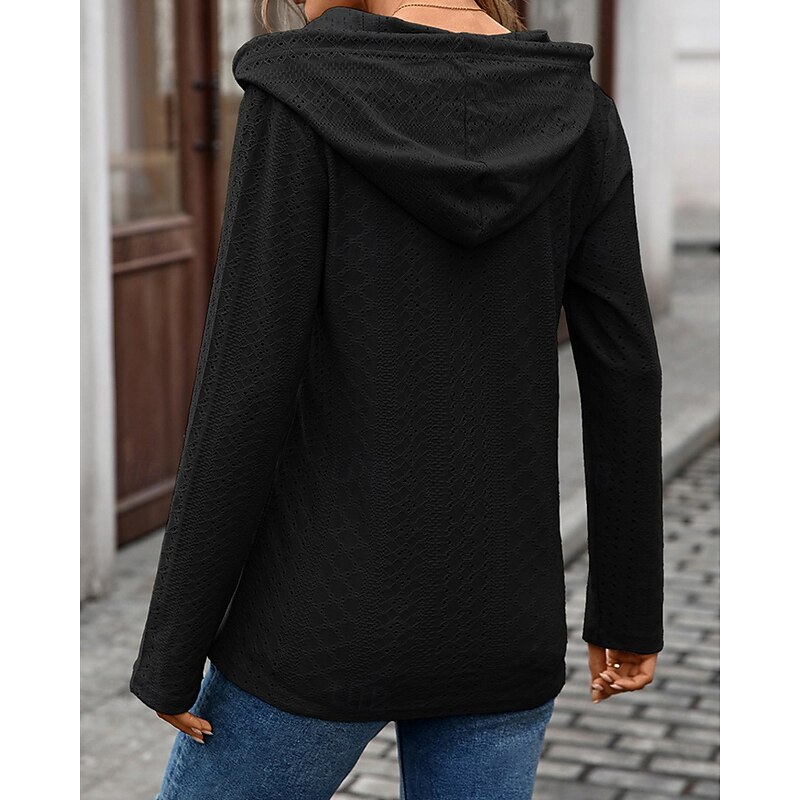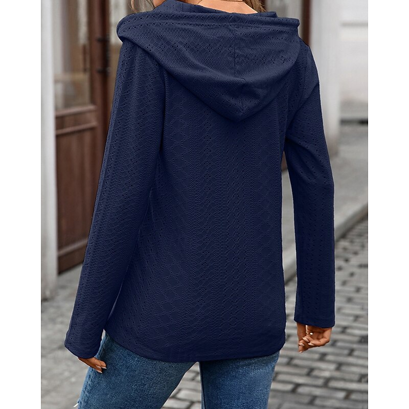 Why Choose Women's Texture Sweatshirt Pullover Hoodie Sweatshirt Plain Streetwear Casual Comfy Long Sleeve Hooded Regular Tops Street Holiday Going out Buttons Black Pink Navy Blue Green Fall?