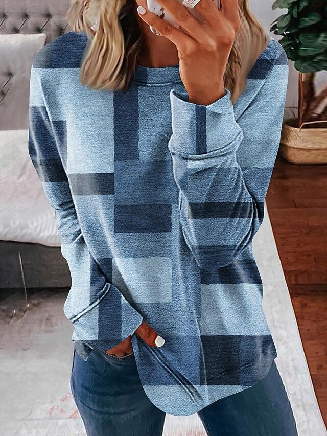 Why Choose Women's Sweatshirts Graphic Geometric Vintage Casual Long Sleeve Crew Neck Regular Tops Dailywear Casual Print Blue Brown Dark Blue Gray Summer Spring Fall?
