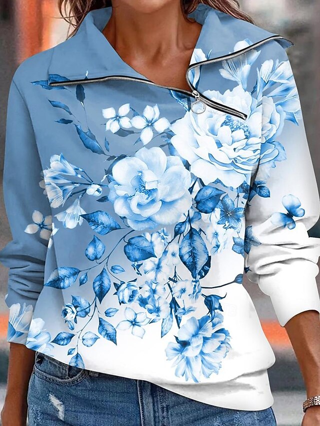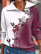 trending ! Women's Zip Up Sweatshirts Floral Graphic Casual Long Sleeve High Neck Regular Tops Red Blue Purple Green Spring Fall Winter
