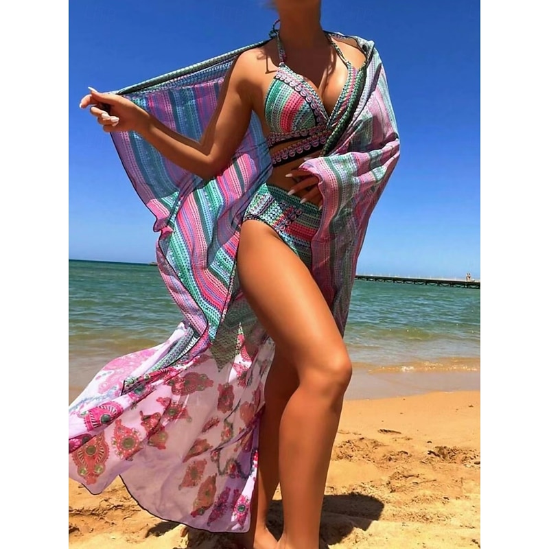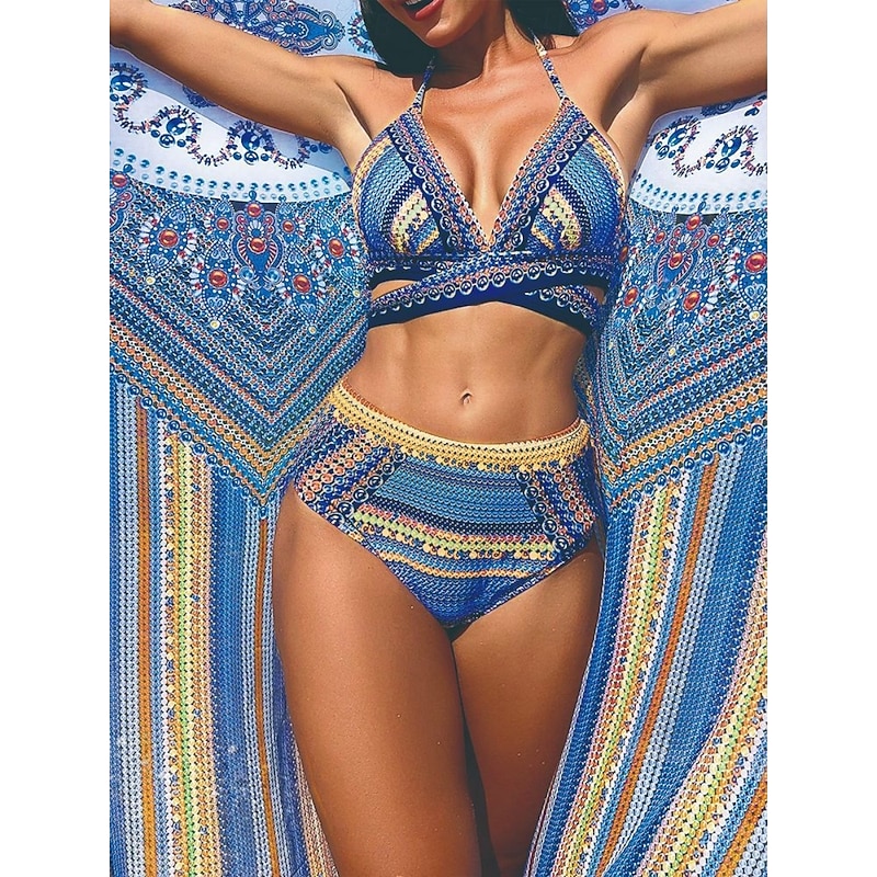This Women's Swimwear Bikini Three Piece Briefs Swimsuit Backless Slim Vacation Beach Wear Geometric V Neck Sleeveless Bathing Suits combines elegant design with practical functionality. Every detail has been carefully considered to ensure you get the premier possible experience. The first-class construction means this product will serve you well for years to come.