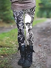 More information about Women's Leggings Cozy Leggings Basic Casual Full Length High WaistPantsHalloween Skull Printing Thermal Warm supple Stretchy Street Casual Daily Black Fall Winter Slim Fit